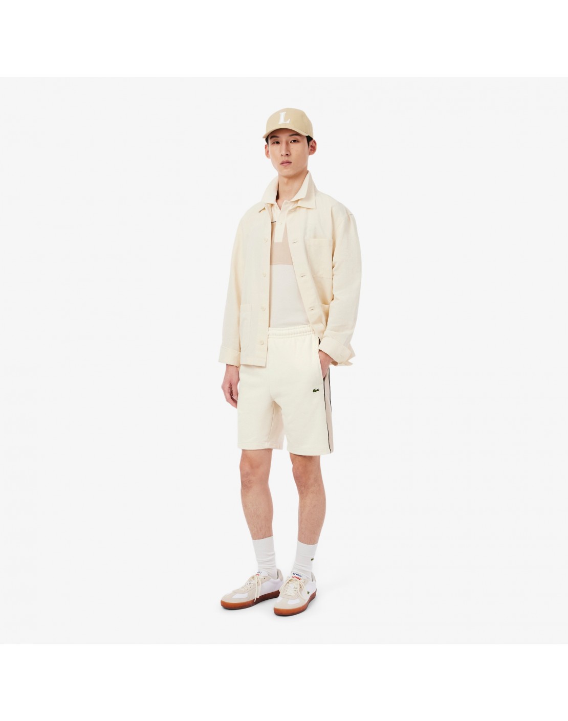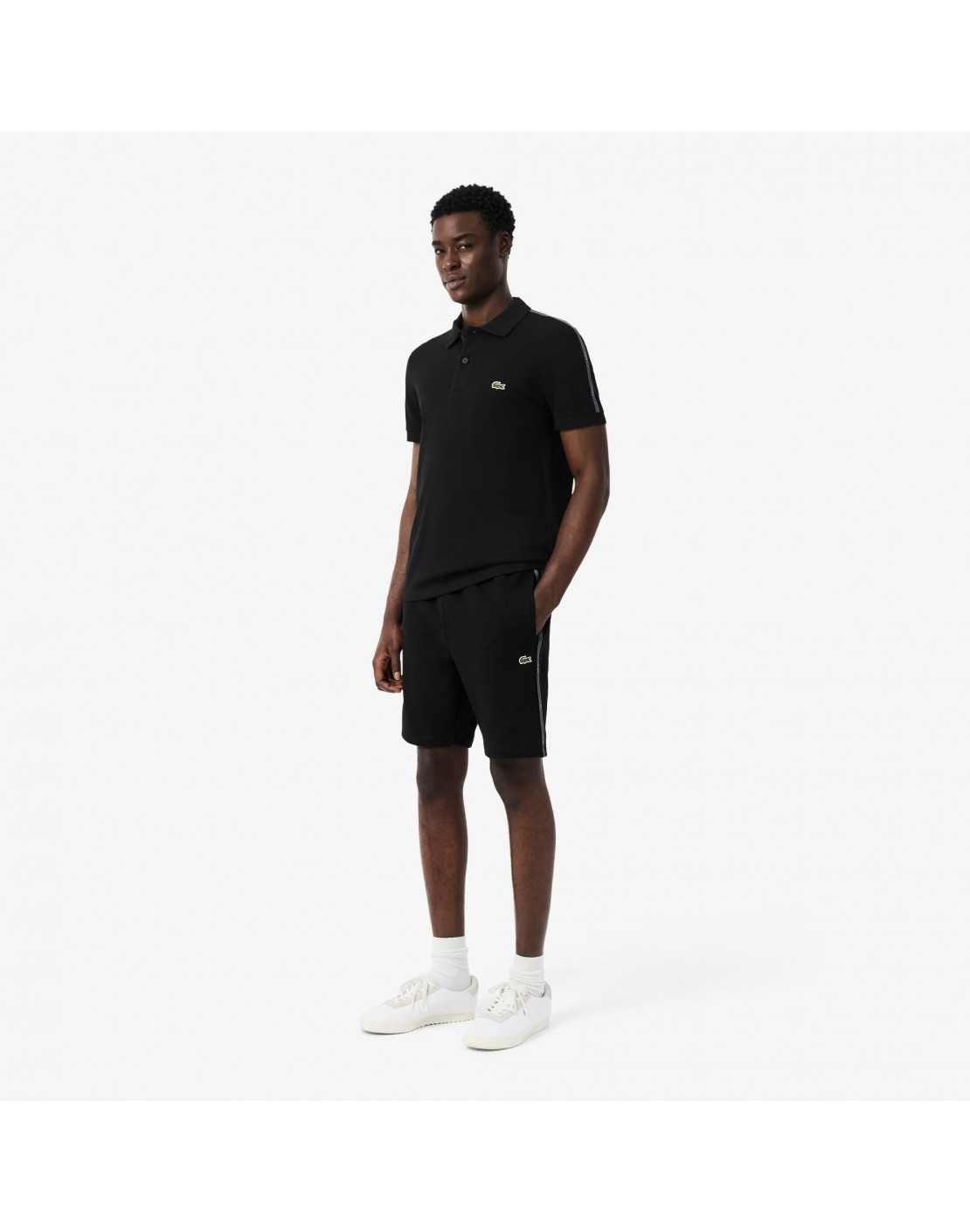 Raya con el logotipo de Lacoste a lo largo de la pernera