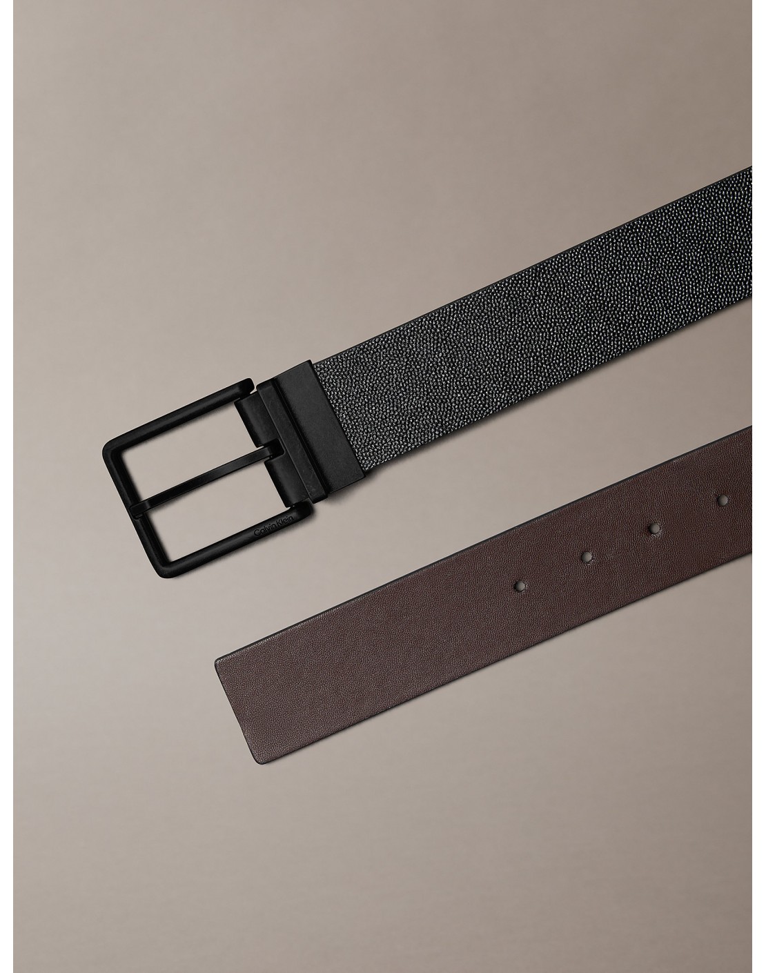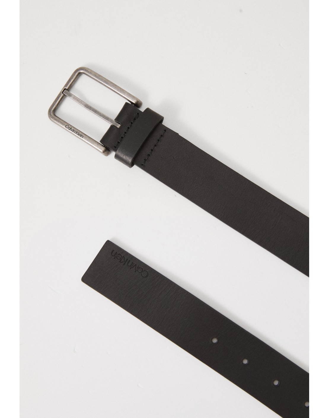 • logo de Calvin Klein grabado en la hebilla