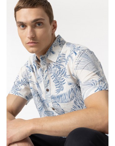 Camisa con cuello solapa y manga corta.