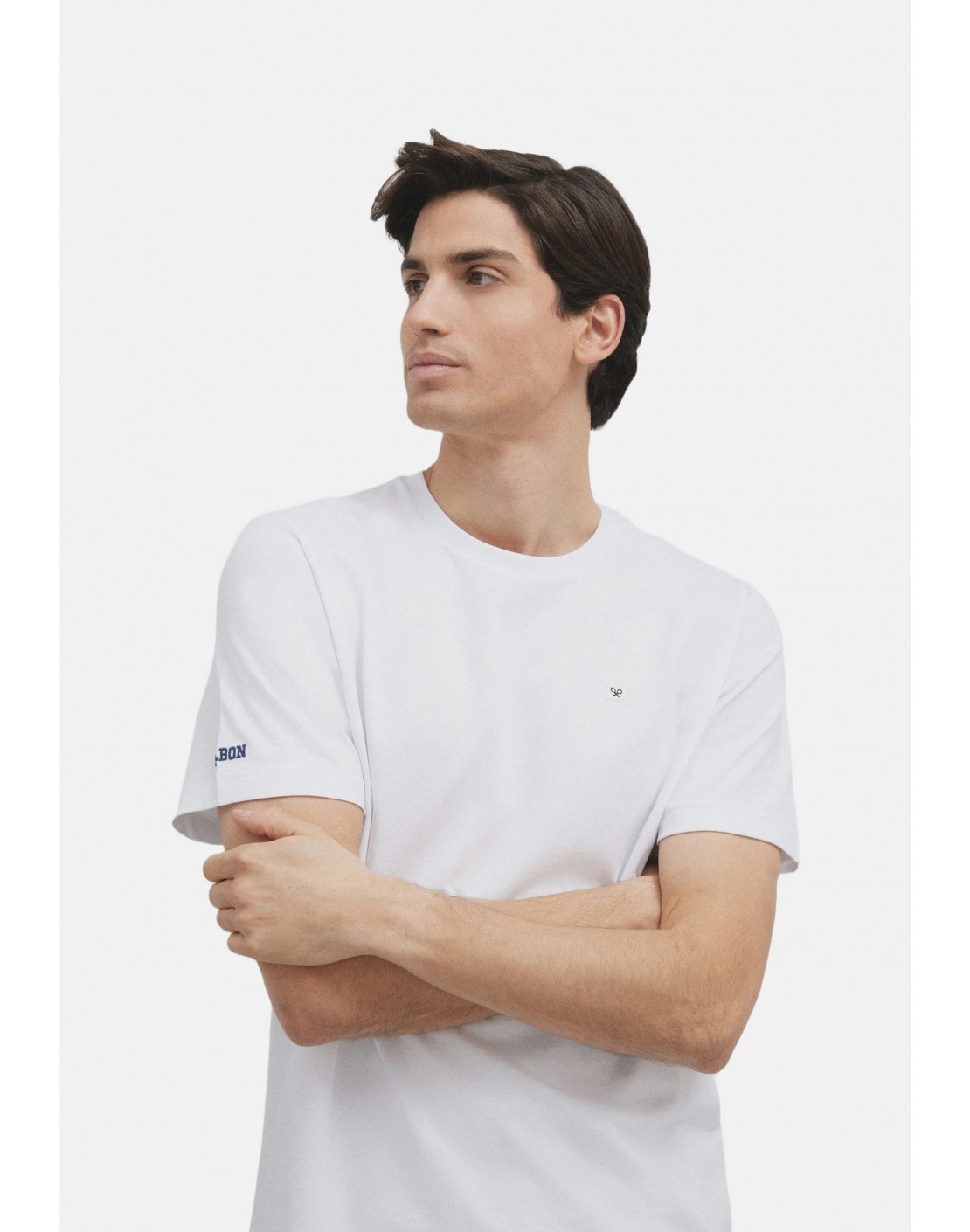 Presenta cuello redondo y letras SILBON bordadas en la manga.