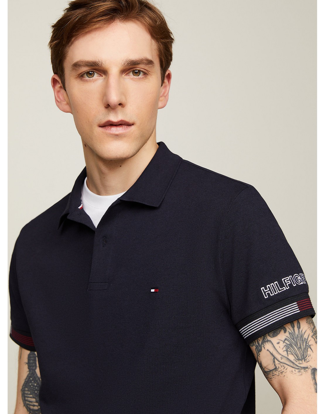 • Logo del monotipo de Tommy Hilfiger en la manga