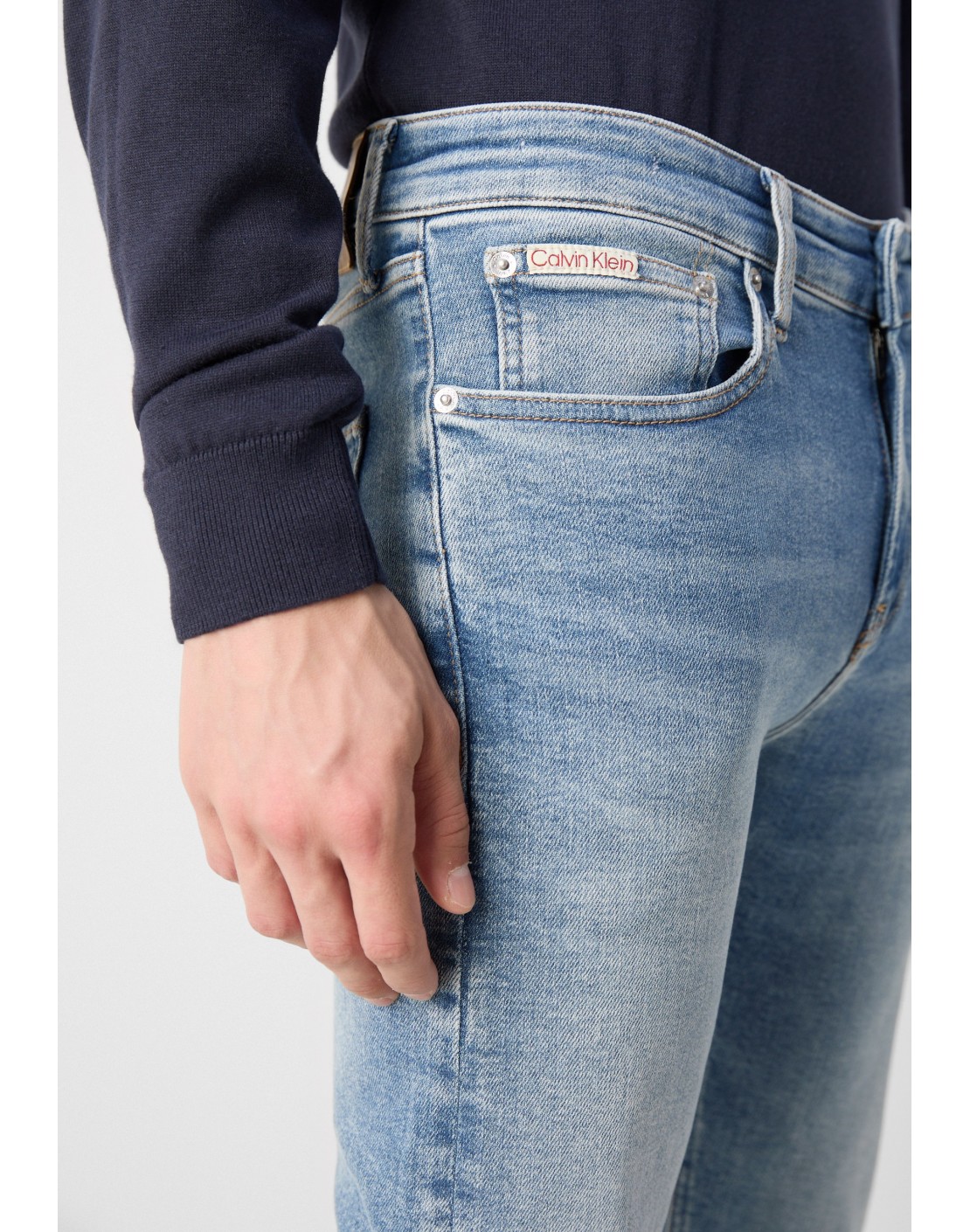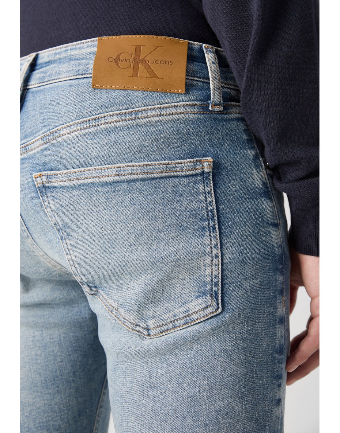 • herrajes de Calvin Klein e insignia de piel