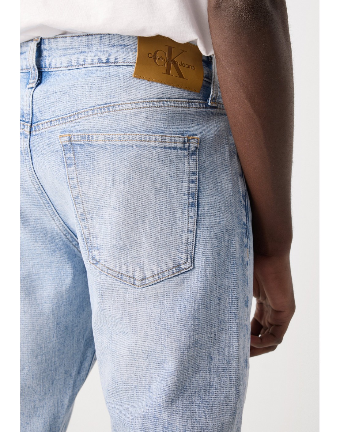 • herrajes de Calvin Klein e insignia de piel