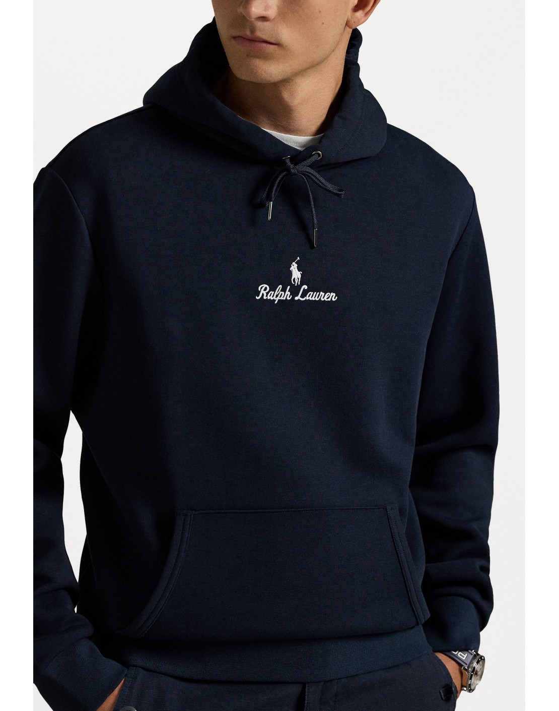 Caballo marca de la casa y "Ralph Lauren" en letra manuscrita bordados en el centro de la parte delantera.