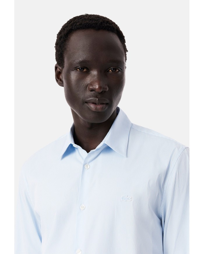 Lacoste Camisa de corte ajustado de popelín elástico de rayas